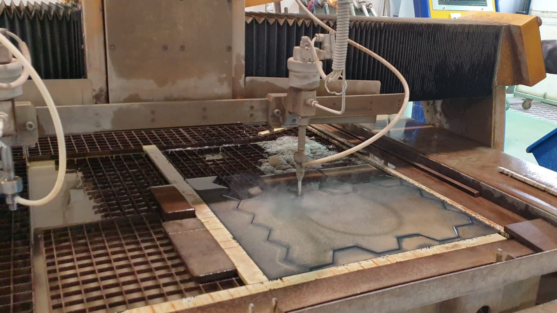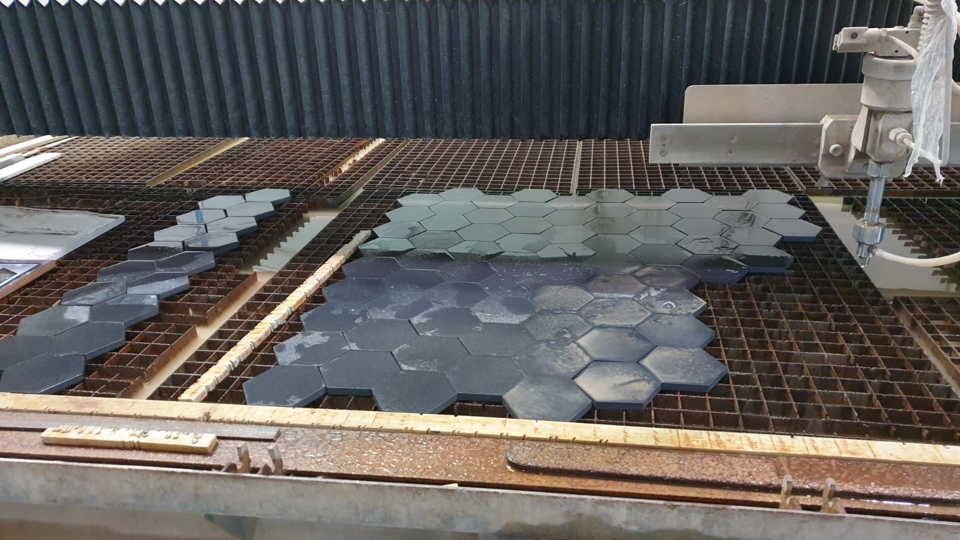 Nahlédněte s námi do zákulisí výroby TechnoArt, kdy jsme na dvouhlavovém vodním paprsku Awac vyráběli mozaiku Scala a Hexagon.